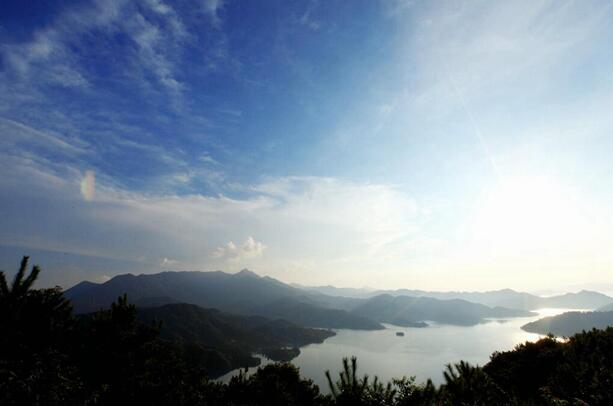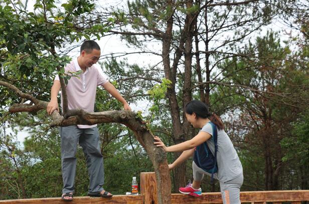 我們?nèi)珕T登上筆架山頂,一齊欣賞萬(wàn)綠湖的美麗秀色,